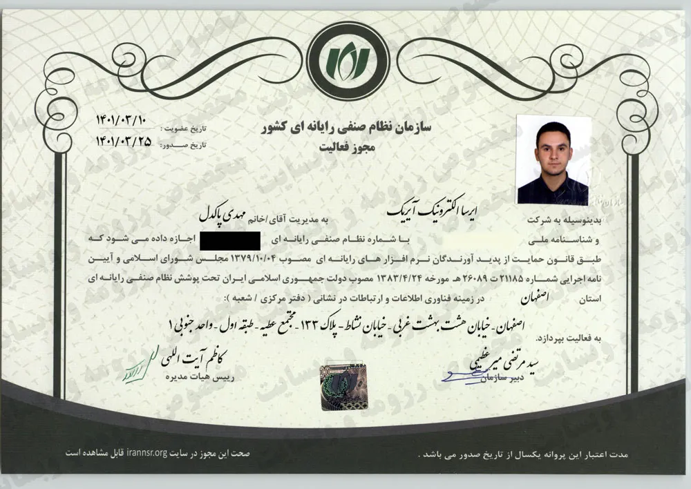 گواهی عضویت ما در سازمان نظام صنفی رایانهای کشوری، تأییدی بر تخصص، پایبندی به اصول حرفهای و دسترسی ما به آخرین نوآوریهای صنعت IT است. این مجوز، شما را مطمئن میسازد که با مجموعهای قانونمند، اخلاقمدار و بهروز در حوزه فناوری اطلاعات طرف هستید که قادر به ارائه خدمات و راهکارهای با کیفیت بالا و مبتنی بر استانداردهای روز دنیا است و این ما را از رقبا متمایز میسازد.