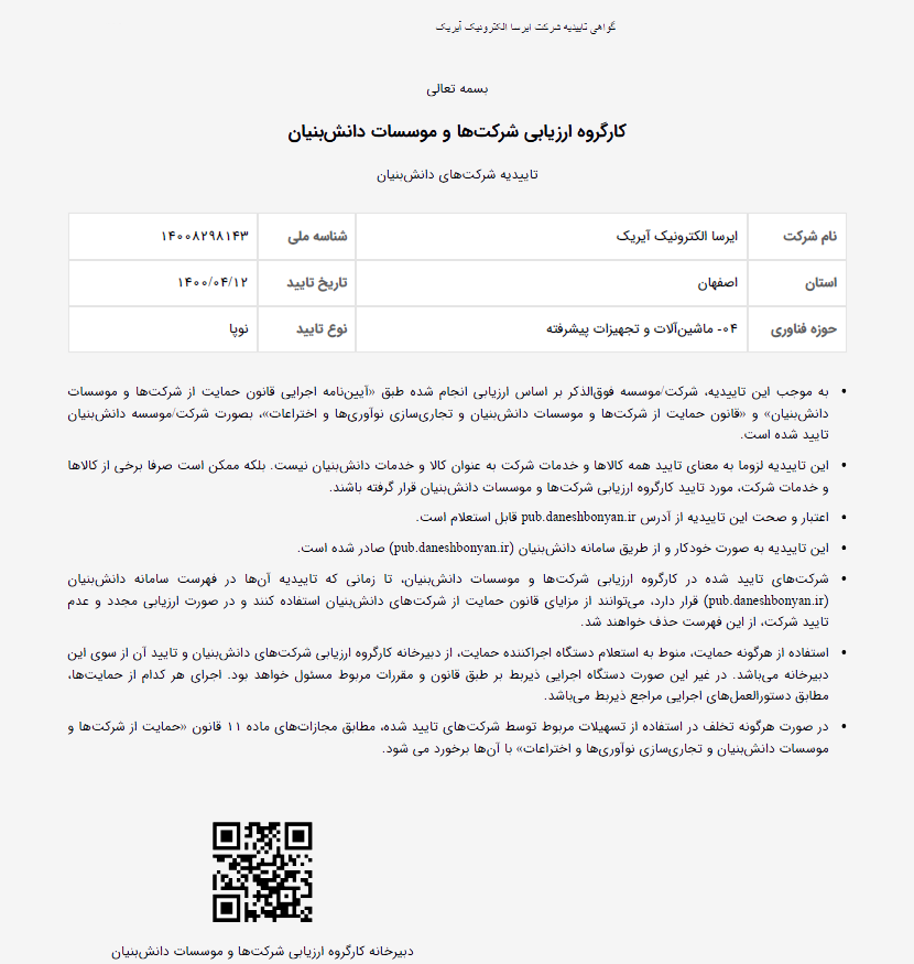 شرکتهای دانشبنیان در خط مقدم فناوری قرار دارند و محصولات و راهکارهایی ارائه میدهند که مبتنی بر دانش عمیق و نوآوریهای پیشرفته است. این مجوز نشان میدهد که ما تنها یک ارائهدهنده محصول نیستیم، بلکه توانمندی حل چالشهای پیچیده و ارائه راهحلهای فناورانه و منحصربهفرد را داریم. که میتواند ارزش افزوده قابل توجهی برای شما ایجاد کند.
